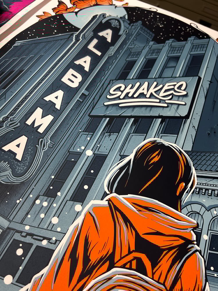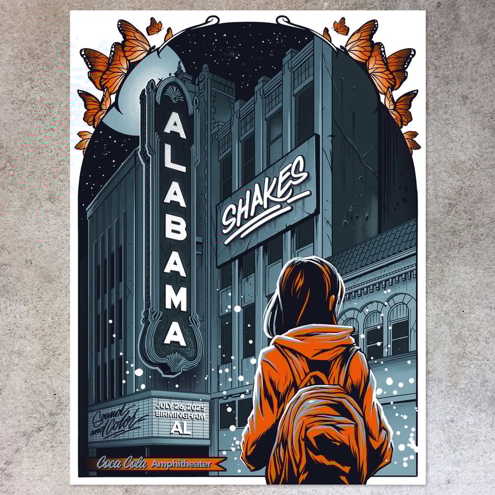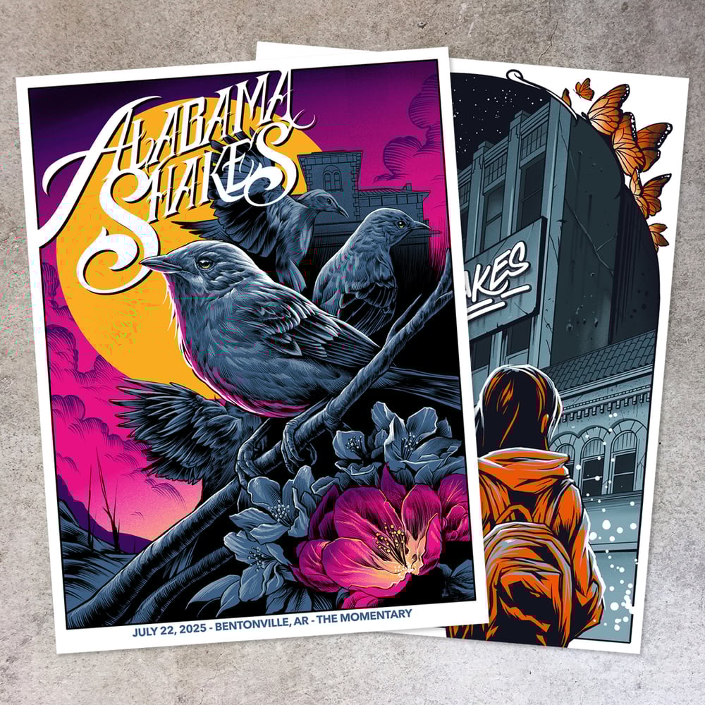 Posters measure 18" x 24" each for Alabama Shakes July 22nd Benvonville, AR and July 26th Birmingham, AL 2025 shows.