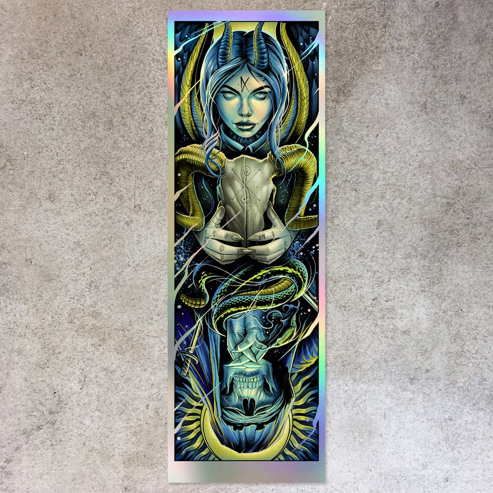 Prints measure 12" x 36" and will be printed on various foil paper stocks, each with varying levels of rarity! Purchasers may receive a Rainbow Foil edition (shown on the product page here) or they may receive an ultra rare, one of a kind edition!